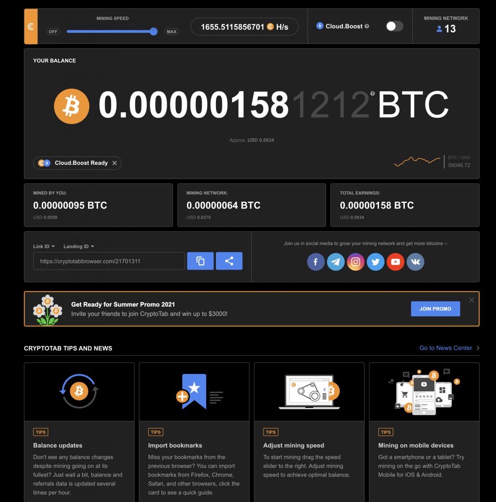 雖然 CryptoTab 不能讓你短期發達,如果在相同的時間做其他事情,又能讓另一件事情同時進行的話,還是非常有效率。 例如在上班、上課、睡覺時各種情況之下,你只需要開著CryptoTab網站,便可以持續獲得比特幣,相當於把時間效益最大化。