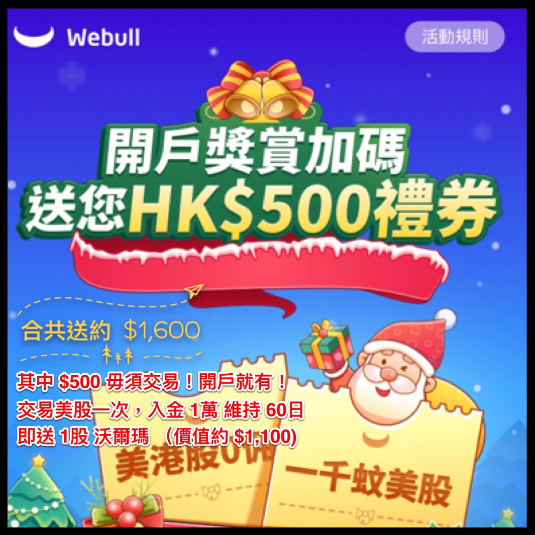 微牛證券Webull 優惠又加碼呀!超正啊!即係成HK$1,600了!其中有$500仲要係毋須交易開戶就有!真繼續閱讀 “微牛證券Webull開戶優惠"